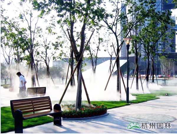 該工程東臨新業(yè)路,西至解放東路,北倚杭州市市民中心,工程占地 5.1公頃,內(nèi)容包括地面花崗巖及木地板鋪裝,臺階花崗巖鋪裝,臺階水池、兩翼水池鋪裝,種植土更換,喬木種植,草皮鋪種等。工程將現(xiàn)代科技和園林藝術(shù)完美交融,是杭州走向錢塘江時代的創(chuàng)新力作。