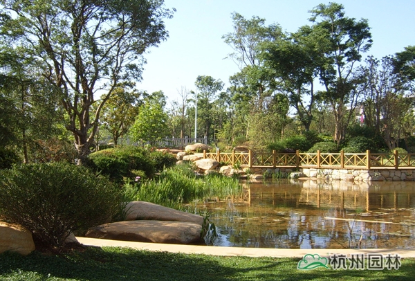 該工程地處昆明市呈貢縣吳家營鄉(xiāng)小尖山西北附近,為大型綜合性園林景觀工程,內(nèi)容包括硬質(zhì)景觀、綠化種植和水電工程等。工程遵循“顯山露水、山水圍建筑”的設(shè)計原則,通過空間體系的構(gòu)筑,將現(xiàn)代中式建筑風(fēng)格與昆明歷史文化相融合,借助多種造景手法,營造出中國古典園林與云南地方風(fēng)貌相結(jié)合的山水園林景觀。