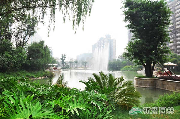 該工程以豪闊手筆打造,近10000平方米的皇家疊水園林與逾8000平方米壯闊雙湖傾城碧波勝景,游走其間,各式園林小品穿插點(diǎn)綴其中,園中大量運(yùn)用噴泉、雕塑、花壇、樹叢等精心布置景觀小品,展現(xiàn)令人贊嘆的皇家美景,湖岸旁精心布置的疊水景觀、親水平臺(tái)、噴水雕塑、親水棧道之間,以花卉、景觀樹完美銜接,景觀錯(cuò)落有致,塑造出豐富的層次,打造出步移景異的極致景觀效果。