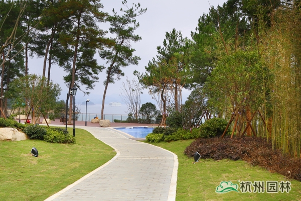 該工程位于浙江省淳安縣千島湖大石坪半島,主要施工內容包括綠化種植、硬質鋪裝、景觀土建、景觀水電安裝等。千島湖以大旅游業(yè)為龍頭的服務經濟前景廣闊,該酒店獨具特色的綠化景觀將成為千島湖酒店服務領域的一大亮點。
