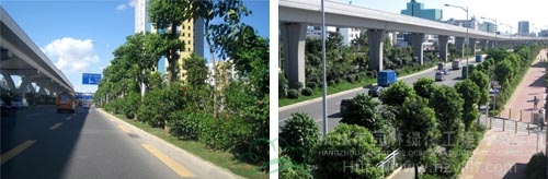 如今,開(kāi)車(chē)行進(jìn)在這條道路上,干凈整潔的路面、開(kāi)闊通透的視野、清新自然的景觀,給人帶來(lái)閑適、愜意的感覺(jué)?!耙匀藶楸?,尊重自然”的綠化理念,體現(xiàn)在景觀中的每個(gè)細(xì)節(jié);自然環(huán)境與城市環(huán)境的密切結(jié)合,使高架橋的道路通行功能與橋下中央綠化帶的生態(tài)功能有機(jī)融合。整條道路,不僅體顯出深圳這個(gè)濱海大都市獨(dú)有的景觀特色,更彰顯出這個(gè)城市的生機(jī)活力與熱情奔放。