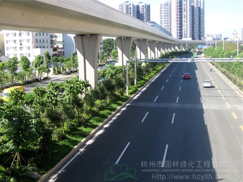 該工程最大的特色和亮點(diǎn)為:“以人為本,尊重自然”、“ 處處有綠葉,無(wú)處不飛花”等自然生態(tài)的設(shè)計(jì)理念貫穿始終;中央綠化帶位于高架橋下,長(zhǎng)勢(shì)茂盛的各類(lèi)植物形成一條繽紛絢麗的彩帶擁簇著高架橋段,使整條橋段與綠化景觀有機(jī)融合。2012年,該工程榮獲中國(guó)風(fēng)景園林學(xué)會(huì)“優(yōu)秀園林綠化工程金獎(jiǎng)”。