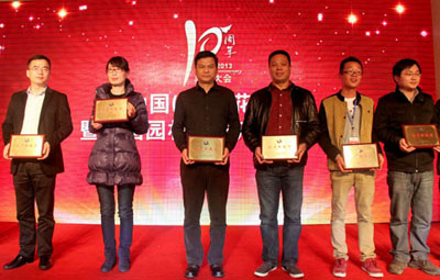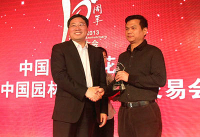 大會揭曉并頒發(fā)了“突出貢獻(xiàn)獎”、“貢獻(xiàn)獎”、“最佳合作伙伴獎”、“2013年優(yōu)秀參展獎”、“2013年產(chǎn)品金獎”等多個獎項,以此表彰一批多年來為中國(蕭山)花木節(jié)的成功舉辦做出積極貢獻(xiàn)的個人和單位。其中,杭州市園林綠化工程有限公司榮獲“最佳合作伙伴獎”、“2013年優(yōu)秀參展獎”,參展的產(chǎn)品“紅寶石”紫薇和“火煉金丹”桂花榮獲“2013年優(yōu)秀產(chǎn)品獎”,總經(jīng)理張炎良上臺領(lǐng)取了獎牌。