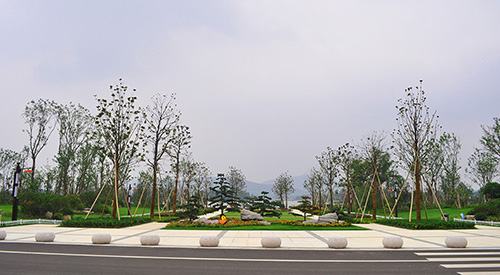 云龍湖珠山景區(qū)景觀綠化工程總占地面積80公頃,全長3.6公里,施工面積63萬余平米,施工內(nèi)容主要包括土方造型、綠化種植、廣場園路鋪裝、道教主題廣場、沉水廊道、木棧道、景石營造、古建筑等。設(shè)計(jì)主題突出"徐州新天地和珠山新印象",總體風(fēng)格體現(xiàn)"人文、生態(tài)、活力",共分為濱湖主入口廣場區(qū)、水杉林游覽區(qū)、濱湖休閑景觀區(qū)、水生植物游覽區(qū)等9個(gè)功能區(qū)及觀魚沉水廊道、道教主題廣場、水杉林大道、沿湖木質(zhì)棧道等多個(gè)景觀節(jié)點(diǎn)。工程施工共分三個(gè)標(biāo)段,其中,杭州市園林綠化股份有限公司承建的是二標(biāo)段。