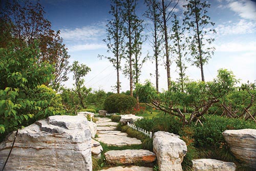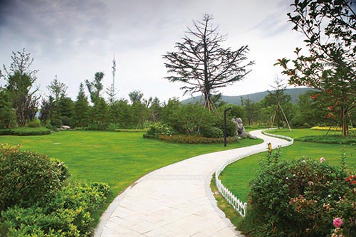 工程在施工過程中,對(duì)原有地形和保留下來的大量古樹、名貴樹木進(jìn)行了充分運(yùn)用。本著以人為本、生態(tài)優(yōu)先的原則,因地制宜、因材施用,建成了許多不同風(fēng)格的景點(diǎn),營造出全新的景觀效果。