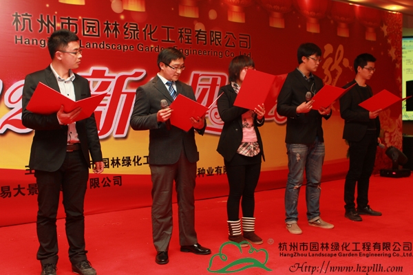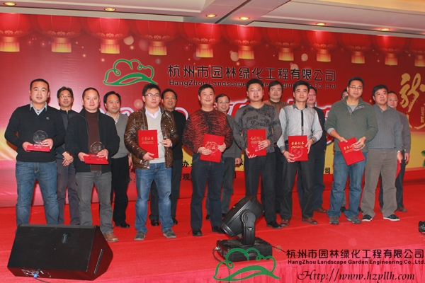 團拜會的一個重要環(huán)節(jié)是表彰2011年度的先進集體和先進個人。人力資源部副經(jīng)理李穎新宣讀表彰文件之后,進行了隆重的頒獎儀式,共頒發(fā)了優(yōu)秀分公司、優(yōu)秀市場拓展經(jīng)理、優(yōu)秀項目經(jīng)理、優(yōu)秀員工、新苗獎五個獎項,浙江省林業(yè)廳、杭州市林水局有關(guān)領(lǐng)導(dǎo),董事長吳光洪等為獲獎?wù)哳C發(fā)了證書和獎牌。
