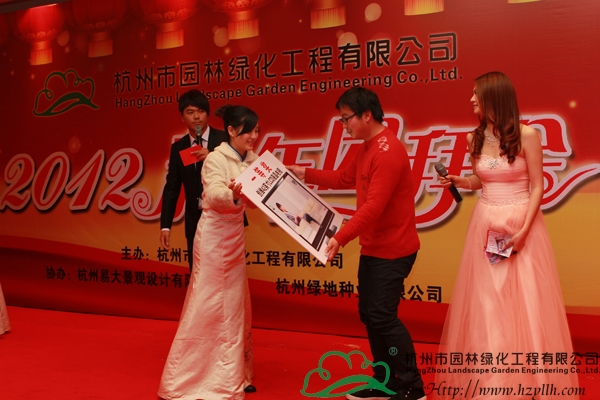 隨著晚宴的開始,精彩的節(jié)目表演也拉開了序幕。一曲熱情激昂的鼓樂《中國龍》,營造出了龍年吉祥喜慶的節(jié)日氛圍,隨后,唯美的獨舞表演、深情的情歌對唱、優(yōu)美的葫蘆絲吹唱,功夫茶道、詩詞朗誦、搞笑小品……一個又一個精彩節(jié)目,將現(xiàn)場的氣氛一次次推向高潮。而期間最令人期待的,是現(xiàn)場的抽獎環(huán)節(jié),一等獎的42寸高清液晶電視機、二等獎的皇冠寢室羽絨被、三等獎的博洋家紡四件套,豐厚的獎品讓每個人都期待著幸運的降臨,隨著一組組數(shù)字的公布,抽到獎的人一個個歡喜雀躍,興高采烈地領(lǐng)走了獎品,現(xiàn)場成為一片歡樂的海洋。最后,投標中心的一曲《明天會更好》,傳達了所有人對2012年的美好期待和祝愿,也預(yù)示著杭州市園林綠化工程有限公司2012年新春團拜會的圓滿成功!