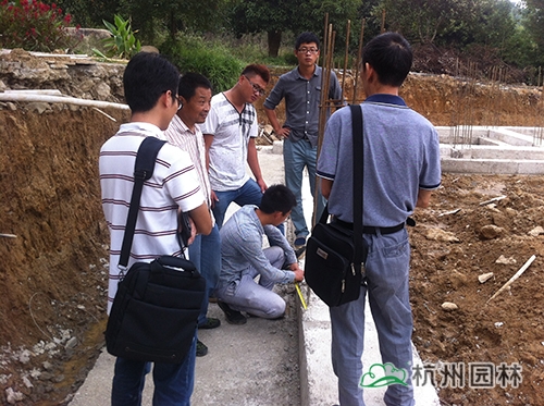 目前,安吉項目部按照施工進度計劃已完成了售票房、公廁、山門、入口亭子、攝香居庭院等的基礎(chǔ)結(jié)構(gòu)施工。檢查組一行到項目部后,先對施工現(xiàn)場進行了全面細致的檢查,指出了存在的問題,同時將正確的操作程序?qū)κ┕と藛T進行詳細講解,要求施工人員嚴格按規(guī)范操作,保證工程質(zhì)量。接著,工程管理部、成本部和財務(wù)部對項目部進行交底工作,并提出相應(yīng)的要求。