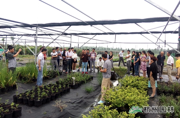 下午,在杭州市園林綠化股份有限公司研發(fā)中心技術(shù)員劉華紅的帶領(lǐng)下,大家實地參觀了杭州畫境種業(yè)有限公司(徑山基地)。結(jié)合公司開展的一個除草劑試驗,劉華紅介紹了試驗的設(shè)計思路、處理設(shè)置,展示了拔綠(Barricade)、莠去津(Atrazine)等4種除草劑不同濃度處理的除草效果,初步指出正常用量的拔綠對多種庭院植物容器苗的除草效果較好。