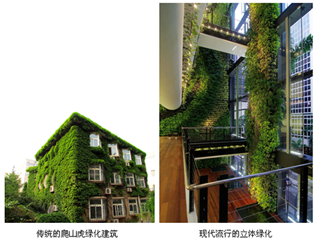 立體綠化的主要形式為立體綠化墻,也稱植物墻或綠墻,是近年來興起于法國的一項用于墻面垂直綠化的新技術(shù)。過去用于垂直綠化的植物只有大家熟悉的爬山虎、紫藤等,但是這些植物缺乏常綠、觀花、觀果的觀賞效應,而且還要引導植物攀爬墻面,搭棚架、立柱,幾年以后才成氣候,比較麻煩。而如今的立體綠化墻是一個小型生態(tài)系統(tǒng),它可以根據(jù)客戶需要,結(jié)合氣候、溫度、濕度、色彩等綜合條件,選配四季長綠或色彩豐富的植物,隨時在人們想要的地方構(gòu)建出一個貼近自然又超脫自然的生活環(huán)境。當在屋頂、墻面等覆蓋了適當?shù)闹脖缓?,大量的熱氣和紫外線都會被植物抵擋,這層植物墻能夠使其表層溫度降低15°C左右,夏天基本可以不需要依賴空調(diào)。而且植物墻能消除墻面對陽光的反射,使走在大街上的人們不受陽光干擾,感受到?jīng)鏊耐瑫r也避免眼睛被強光照射。到了冬天,植物墻又具有保溫的功能,這種方式非常低碳節(jié)能,并且更健康。