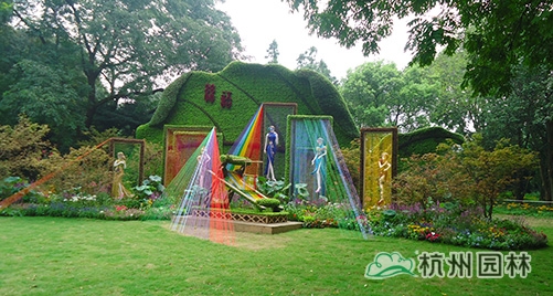 《古韻良緣》:利用一些古時(shí)婚嫁常見的婚床、拜堂桌臺(tái)、喜轎等婚嫁元素組合而成,反映了中國傳統(tǒng)的婚禮場(chǎng)景。利用日常修剪的枯枝、落葉等園林廢棄物作為小品構(gòu)架的主要材料,表達(dá)了現(xiàn)代自然、生態(tài)、環(huán)保的設(shè)計(jì)理念。