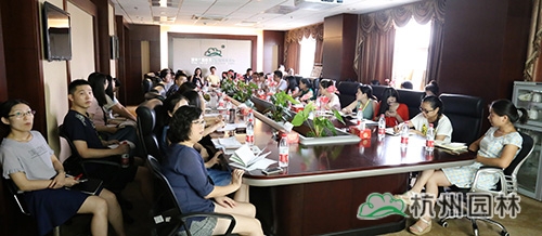 8月17日,杭州市園林綠化股份有限公司2016年半年度通訊員工作會議在8樓會議室召開,來自各部門的14名通訊員參加了會議。會議由企劃部經(jīng)理、《園冶》報責(zé)任編輯鐘晴主持。
