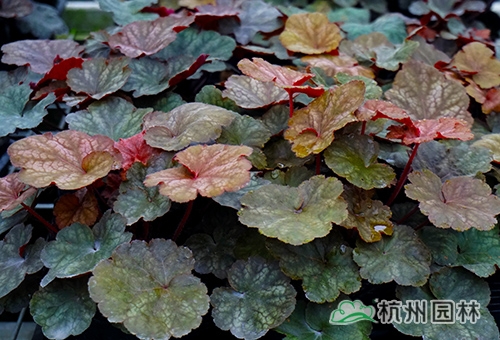 目前長勢較快的礬根、鐵筷子、巖白菜、大黃屬植物等均已陸續(xù)展葉、開花。其中礬根喜半蔭,花期4-10月,葉片色彩豐富,有的品種葉背面色彩也相當艷麗,且葉片顏色會隨季節(jié)、環(huán)境和溫度的變化而變化。礬根多用于林下花境、地被、庭院綠化,是理想的宿根花境材料。目前杭州園林已建立了多個礬根品種的的組培快繁技術體系,為其產(chǎn)業(yè)化生產(chǎn)打下堅實的基礎。