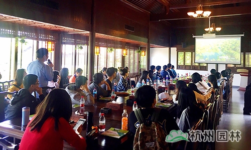 在座談交流會(huì)上,人力資源部副經(jīng)理沈曉萍向大家介紹了杭州園林的發(fā)展情況,展示了企業(yè)近年來(lái)承建的精品工程,并針對(duì)園林專(zhuān)業(yè)學(xué)生在企業(yè)的實(shí)習(xí)方向與職業(yè)發(fā)展規(guī)劃作了簡(jiǎn)單介紹。邱希陽(yáng)老師結(jié)合自身工作經(jīng)驗(yàn),針對(duì)杭州園林承建的工程特點(diǎn),為在座學(xué)生做了精彩講解。