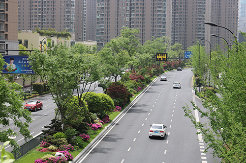 項(xiàng)目南起新業(yè)路,北至?xí)一ㄢ致?,全長(zhǎng)約1750米,是集綠化、美化、文化等為一體的景觀大道,四季特色分明。春有日本早櫻、垂絲海棠等花滿枝頭;秋有銀杏、紅楓色彩明艷,更有桂花一路飄香;夏、冬時(shí)節(jié)風(fēng)景又有不同。豐富的植物配置、色彩鮮艷的草花、文化氣息濃郁的小品……使得這條道路開闊大氣,充滿生機(jī)。