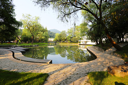 項(xiàng)目位于西湖區(qū)文一西路1000號(hào),走在校園內(nèi),入目所及,豐富的植物組團(tuán)與景石搭配的小景清新而自然;蜿蜒的園路旁,青青翠竹營(yíng)造出幽靜的意境;溪水邊,古樸的亭子靜靜佇立成一道風(fēng)景,柳楊依依,花兒綻放,植物的倒影在水中清晰如畫,一幅婉約的江南水景圖徐徐展現(xiàn)在眼前。