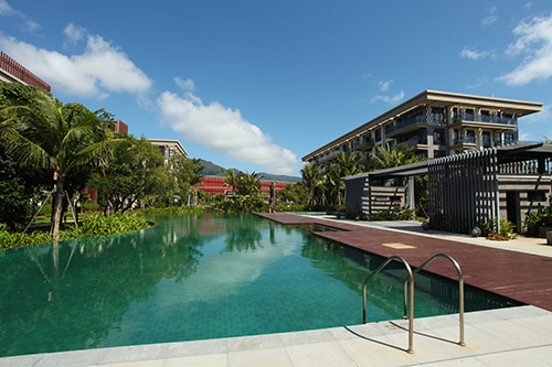 項(xiàng)目位于海南省三亞市亞龍灣椰風(fēng)路南部,整體景觀顯得張弛有度,開闊大氣的廣場(chǎng)鋪裝、宛若綠色地毯般的草坪、色彩豐富長(zhǎng)勢(shì)茂盛的植物、藍(lán)寶石般的碧藍(lán)泳池……規(guī)整中不失自然,簡(jiǎn)潔中深藏精致,盡顯現(xiàn)代主義風(fēng)情的園林美景。