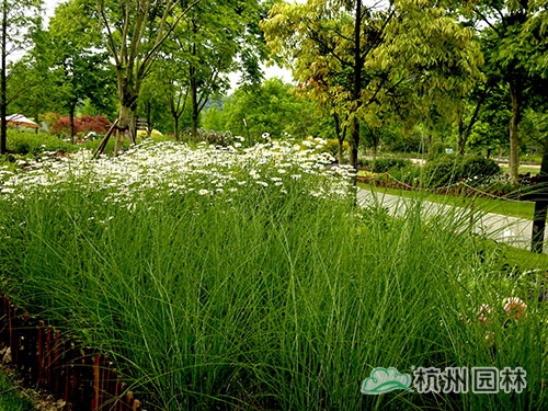大濱菊高度可達60-80cm,在多塊花境組合中,采用大濱菊做隔斷,空間分割自然,又可遮擋部分其他景觀,增加景觀的游賞性和趣味性。