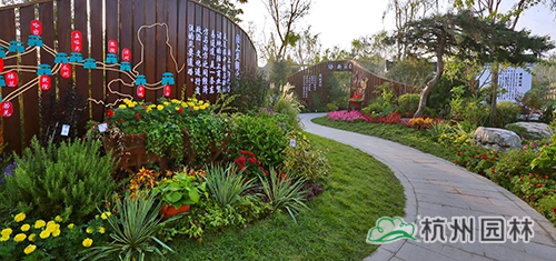 考慮到銀川的干燥氣候,垂直綠化墻植物的保濕成為難題?!罢憬瓐@”垂直綠化墻以無(wú)紡布為墻體材料,使用保濕性強(qiáng)的基質(zhì),優(yōu)選植物種類,同時(shí)搭配滴灌系統(tǒng),保證了綠化墻鮮花擁簇的景象。展園內(nèi)的垂直綠化墻設(shè)計(jì)簡(jiǎn)潔、曲線優(yōu)美,與以錢(qián)塘江文化為主題的背景墻相互映襯,共同展現(xiàn)了新時(shí)期浙江園林景觀的不斷發(fā)展與創(chuàng)新。
