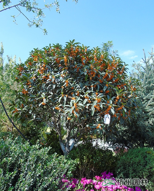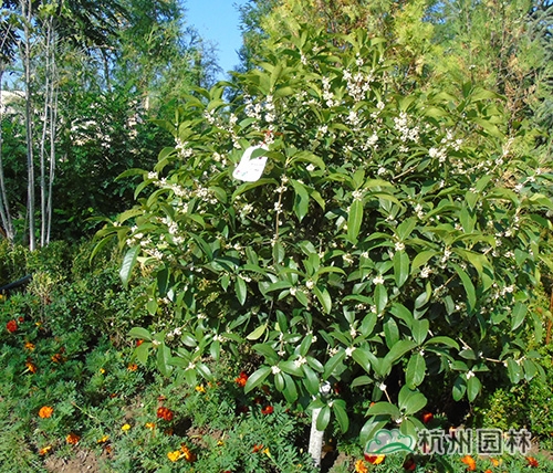 “浙江園”里應(yīng)用的桂花品種以丹桂和銀桂為主,共計50余棵,包括大喬木和小球類。為保證開園期間的觀賞效果,這些桂花被提前運送至銀川,利用當(dāng)?shù)氐牡蜏丨h(huán)境誘使其完成花芽分化,終于在九博會開園時營造出了桂花滿樹、滿園飄香的氛圍。