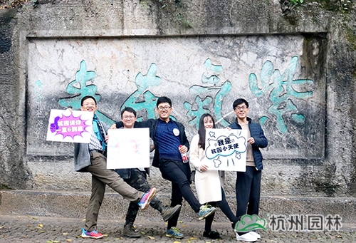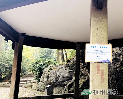 第二個任務(wù)點在紫氣東來石碑。大家在紫氣東來石碑前的平臺區(qū)域用“杭州園林”的元素進行合影、點贊,即可蓋章過關(guān)。紫氣東來石碑是玉皇山的標志性位置,大家在這里合影留念,成為“杭園小天使”,“為杭園打call”,玩的不亦樂乎。