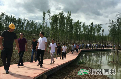 會議開始之前,蘭溪揚(yáng)子江PPP項目負(fù)責(zé)人首先帶領(lǐng)大家參觀了景觀效果最突出的蘭溪揚(yáng)子江PPP項目四工區(qū),該區(qū)域主要施工內(nèi)容包括水處理、園林景觀綠化、濱水平臺及棧道,風(fēng)雨連廊、折形平臺、服務(wù)建筑及室外附屬工程等。