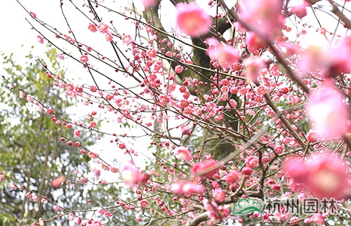 兩棵梅樹遙遙相望,爭(zhēng)芳吐艷。