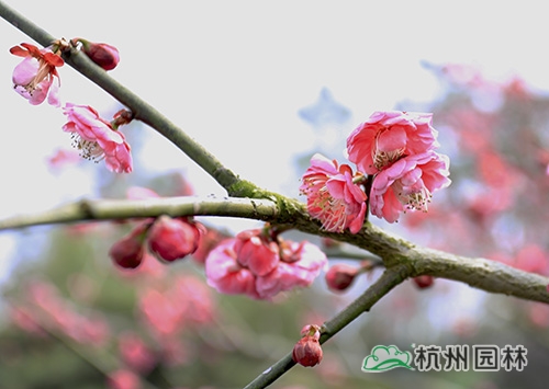 梅花Armeniacamume Sieb,薔薇科梅屬,落葉喬木,高達(dá)10m?;?/span>l~2朵單生,具短梗,芳香,在冬季或早春葉前開放。梅樹蒼勁古雅,疏枝橫斜,梅花傲霜斗雪、凌寒獨(dú)開、清雅俊逸。栽培歷史長(zhǎng)達(dá)2500年以上。古樸的樹姿,素雅的花色,秀麗的花態(tài),恬淡的清香,和豐盛的果實(shí),自古以來就為廣大人民所喜愛,為歷代著名文人所謳歌。賞梅之風(fēng)自古至今連綿不絕,賞梅以聞香、觀姿、品風(fēng)骨為主。