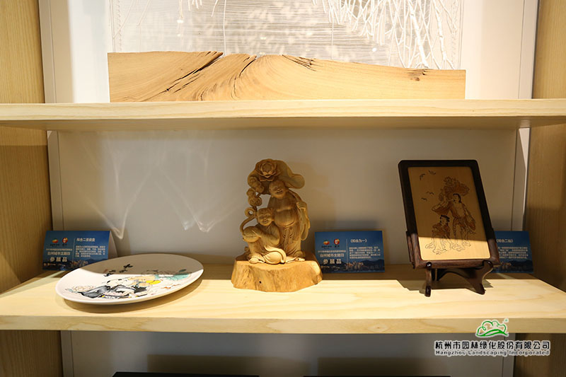 負(fù)一層展廳內(nèi),不僅循環(huán)播放著臺(tái)州城市形象、旅游景區(qū)、山海風(fēng)光、生態(tài)文明建設(shè)、“兩山”理論成果的宣傳片,還展示了臺(tái)州特色的茶葉、烏藥黃精、楊梅制品、無(wú)患子系列產(chǎn)品、木竹工藝品等特色林產(chǎn)品。