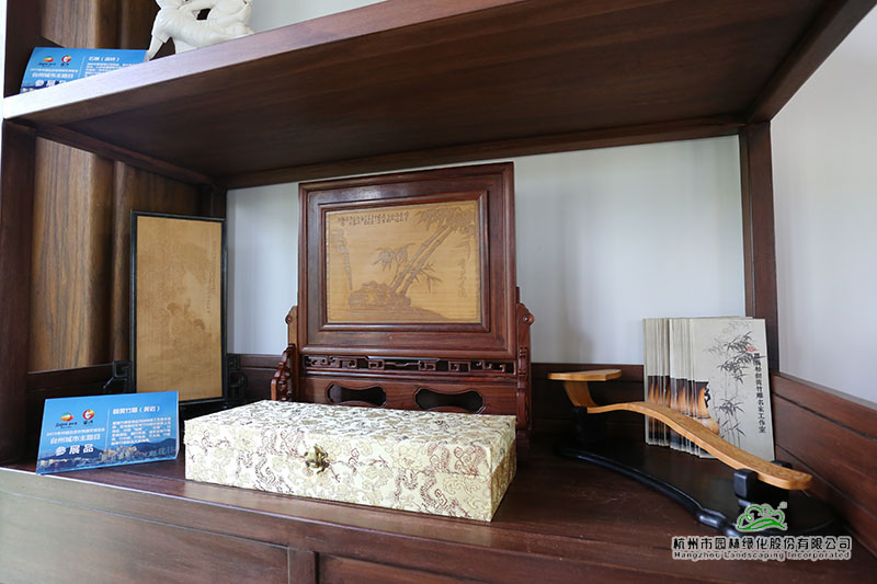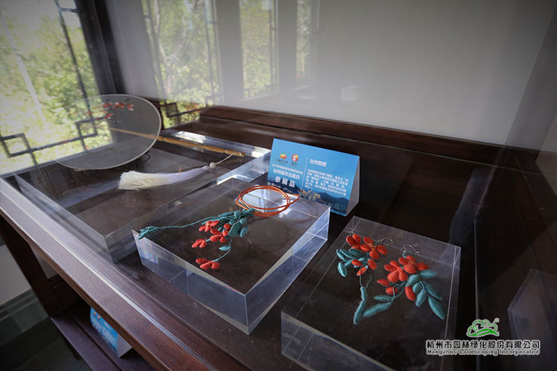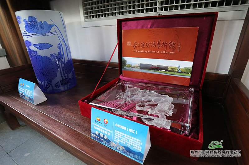 在以浙派民居為風(fēng)格的主題建筑“富春山居”內(nèi),展示著來(lái)自仙居的無(wú)骨花燈、溫嶺的石雕、黃巖的翻簧竹雕、椒江的臺(tái)州玻雕、臺(tái)州刺繡等精美的展品。