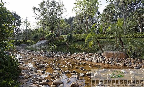 “項(xiàng)目將海綿城市理念融入公園建設(shè),園路鋪裝采用透水混凝土,下雨時(shí)雨水可快速滲透,路面不積水;旱溪景觀則在下雨時(shí)蓄水,雨水可用于植物的日常澆灌,干旱時(shí),鋪滿鵝卵石的水底又與周邊豐富的植物營(yíng)造出另一種園林意境?!彪S著葉偉華的介紹,項(xiàng)目建設(shè)中許多隱藏的細(xì)節(jié)不斷展現(xiàn),生態(tài)造園的理念進(jìn)一步深入人心。