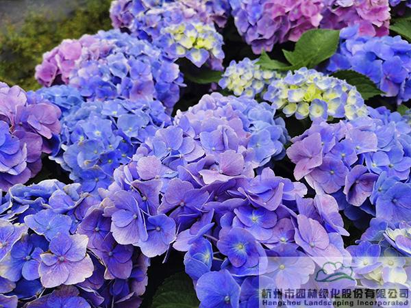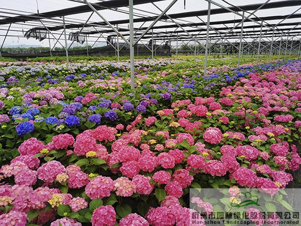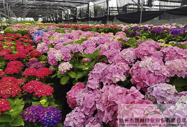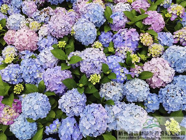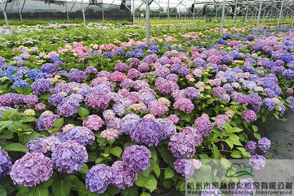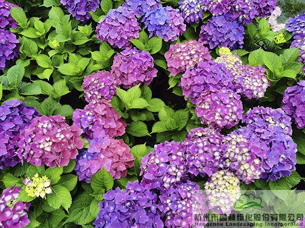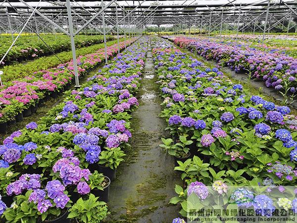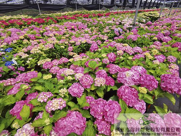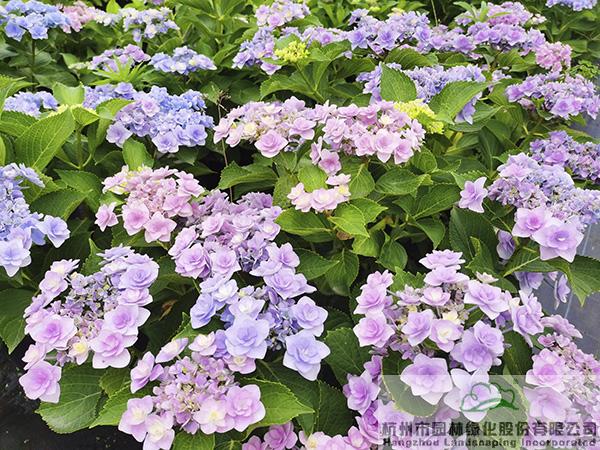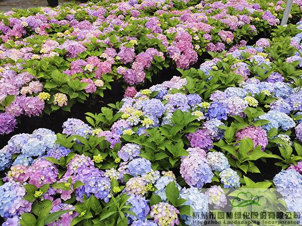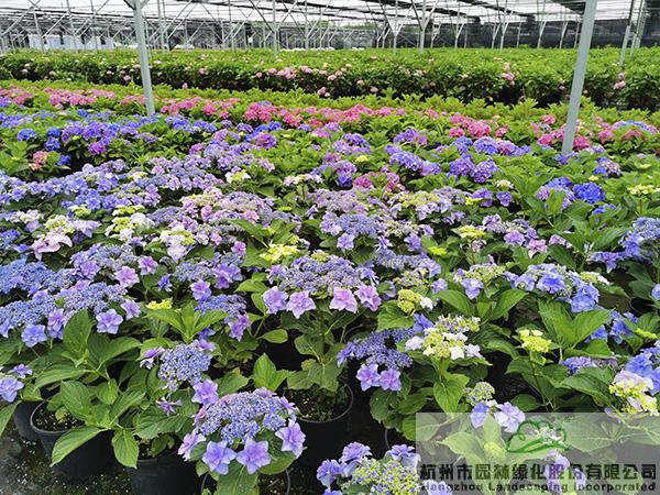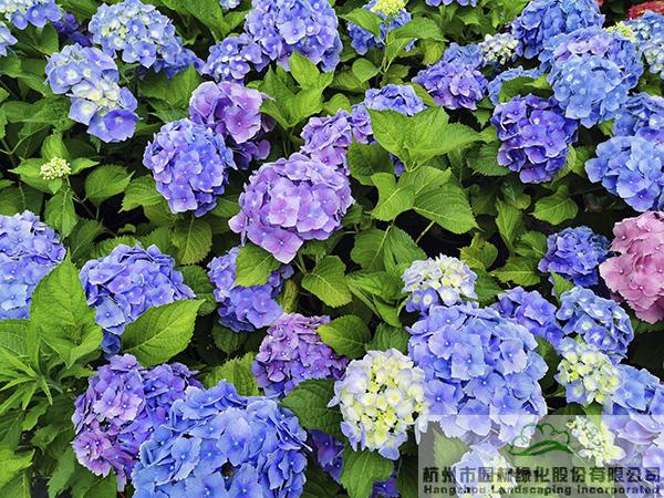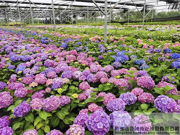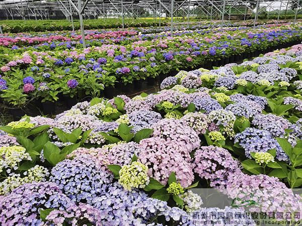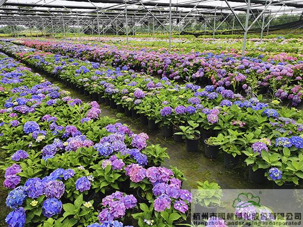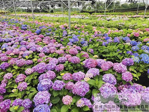 五、六月份,走進(jìn)杭州畫境種業(yè)有限公司徑山基地,依然是一片忙碌的景象,工人們正在忙著苗圃的管理,客戶們正在忙著看苗選苗。在滿眼的綠色中,獨(dú)有一片姹紫嫣紅瞬間吸引了人的目光。走近一看,原來是盛開的繡球。琳瑯滿目的品種,繽紛絢麗的色彩,在夏日的陽光下恣意綻放,開出一片繁花似錦,開出一場(chǎng)花海盛宴。話不多說,先看一波美圖吧。