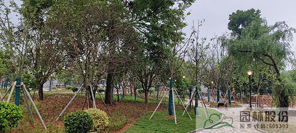 公園內(nèi)部增加流線型道路系統(tǒng),以復(fù)層式開敞組團(tuán)進(jìn)行植物配置,以楓香為主題植物,搭配烏桕、樸樹、櫸樹、柳樹等配景植物,下層種植美人蕉、石蒜、麥冬等,豐富植物層次,營造較為有序且精致的植物景觀,同時設(shè)置景石、景觀小品等增加亮點(diǎn)。
