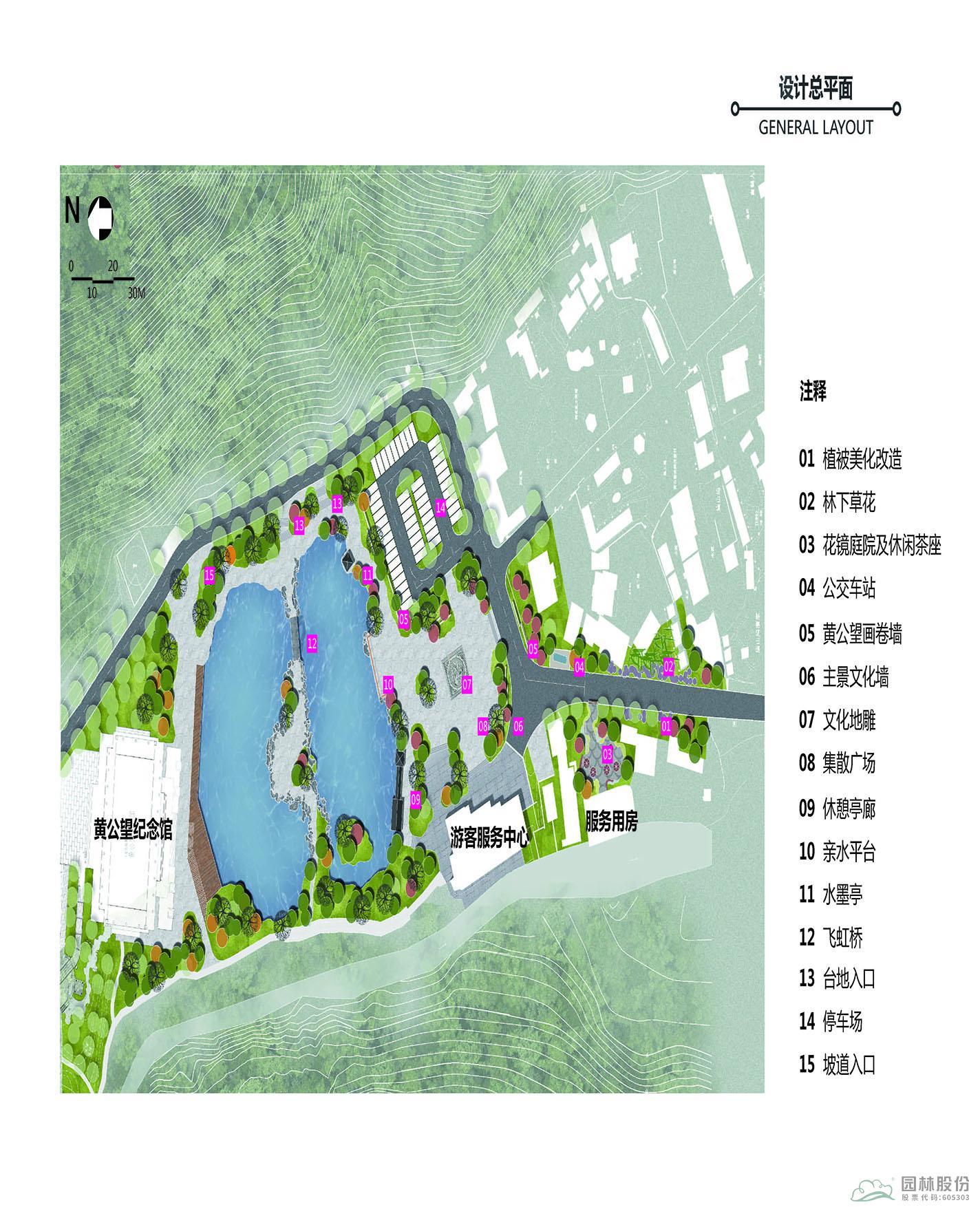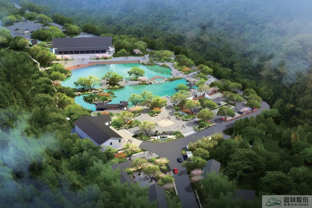 項目位于黃公望隱居地入口,環(huán)境清幽,具有極好的生態(tài)條件。入口區(qū)有黃公望紀念館和接待中心兩處主要功能區(qū),其間有竹林碧譚鑲嵌其中。