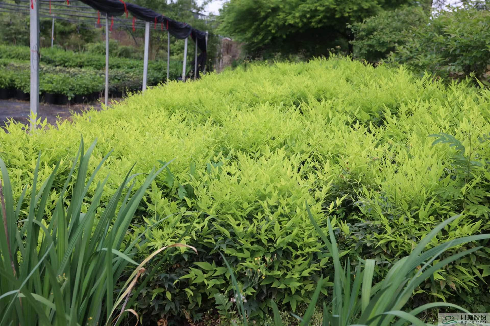 相較于其他南天竹品種,檸檬黃南天竹是少見的金黃色系品種,四季均能保持一個(gè)相當(dāng)亮眼的狀態(tài)。低矮飽滿的冠型與密集斜展的金葉,明顯區(qū)別于其他金色系植物品種。