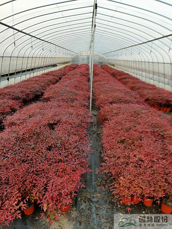相較于火焰南天竹,灣流南天竹葉片更加平整,幼苗至成苗階段,葉姿都向上斜展,視覺表現(xiàn)更具活力。灣流南天竹分枝能力強(qiáng),莖干基部和中部均能大量抽梢,叢生性好,長勢旺,適合孤植、叢植、色塊或綠籬等。
