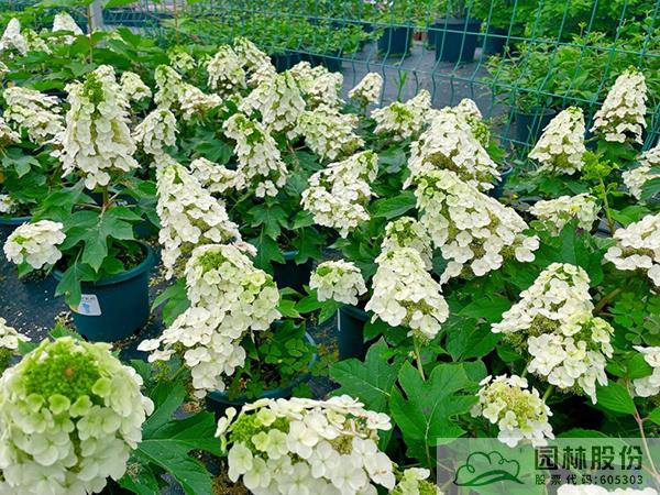 虎耳草科繡球?qū)?,落葉灌木;成株高度100-150 cm,成株冠幅 80-150 cm;葉片掌狀,長寬接近,3~7 裂;花期6-10 月,圓錐花序,花朵密集型,盛花時(shí)碩大醒目的花序可達(dá) 30 cm 以上,初期翠綠色,中后期花色逐漸轉(zhuǎn)白,秋季晝夜溫差大會使其逐漸暈染上粉紅色;老枝開花,成年植株花期觀賞效果極佳,花后修剪,平時(shí)只需修剪重疊枝、病殘枝即可,以免影響第二年開花;耐熱耐寒,喜溫暖和偏蔭蔽的環(huán)境,微酸性土壤;株型高大,枝條挺拔,樹冠寬闊豐滿,花球碩大;櫟樹一樣的掌狀葉片,到秋季會轉(zhuǎn)變?yōu)樯罴t色,紅葉期一般從每年的深秋至次年的5月,是一種既可觀花、又可賞葉的彩葉灌木。
