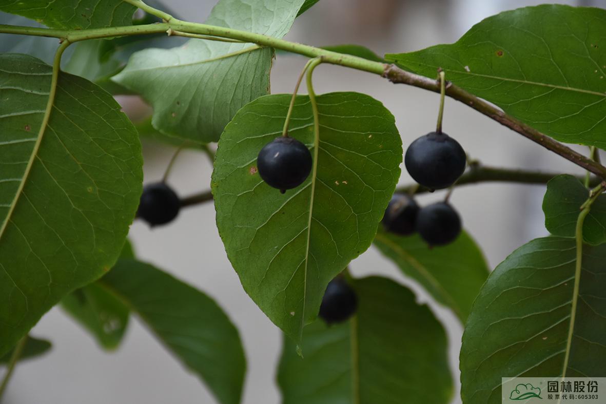 大果冬青:落葉喬木,樹體高大,分枝點高。葉片紙質(zhì)至堅紙質(zhì),卵形或卵狀橢圓形?;ò咨揖叩南銡?。果成熟時黑色,球形。四季景觀分明,隨時間和空間變化呈現(xiàn)不同的姿態(tài),色彩和意境,常在園林景觀中孤植。