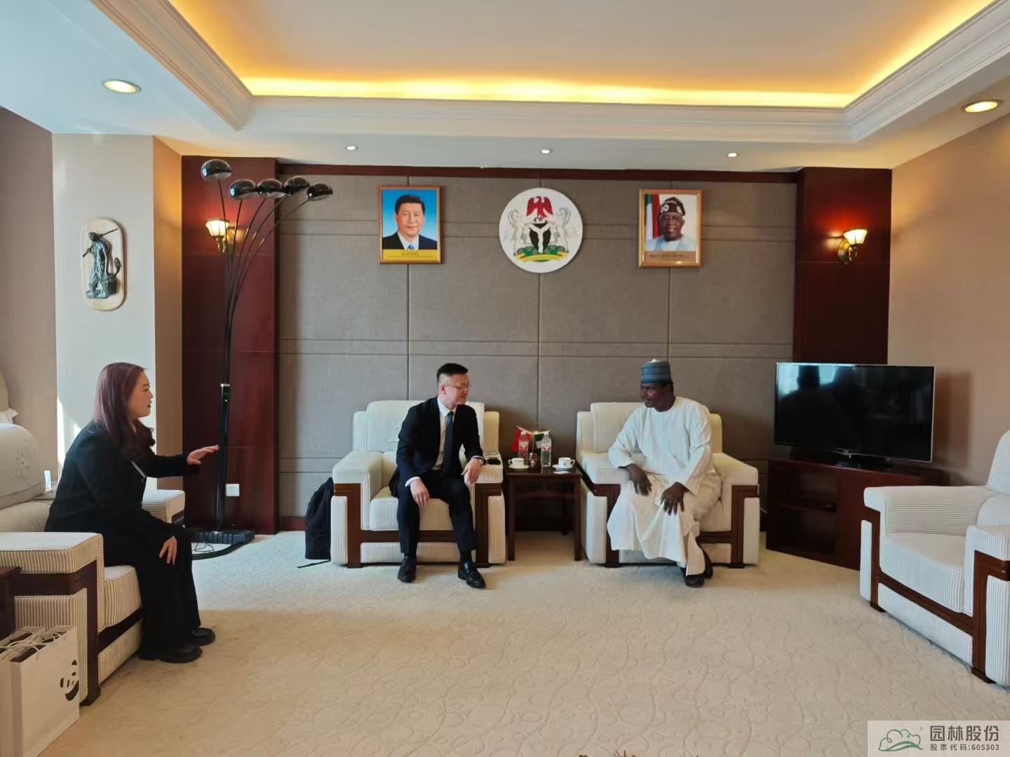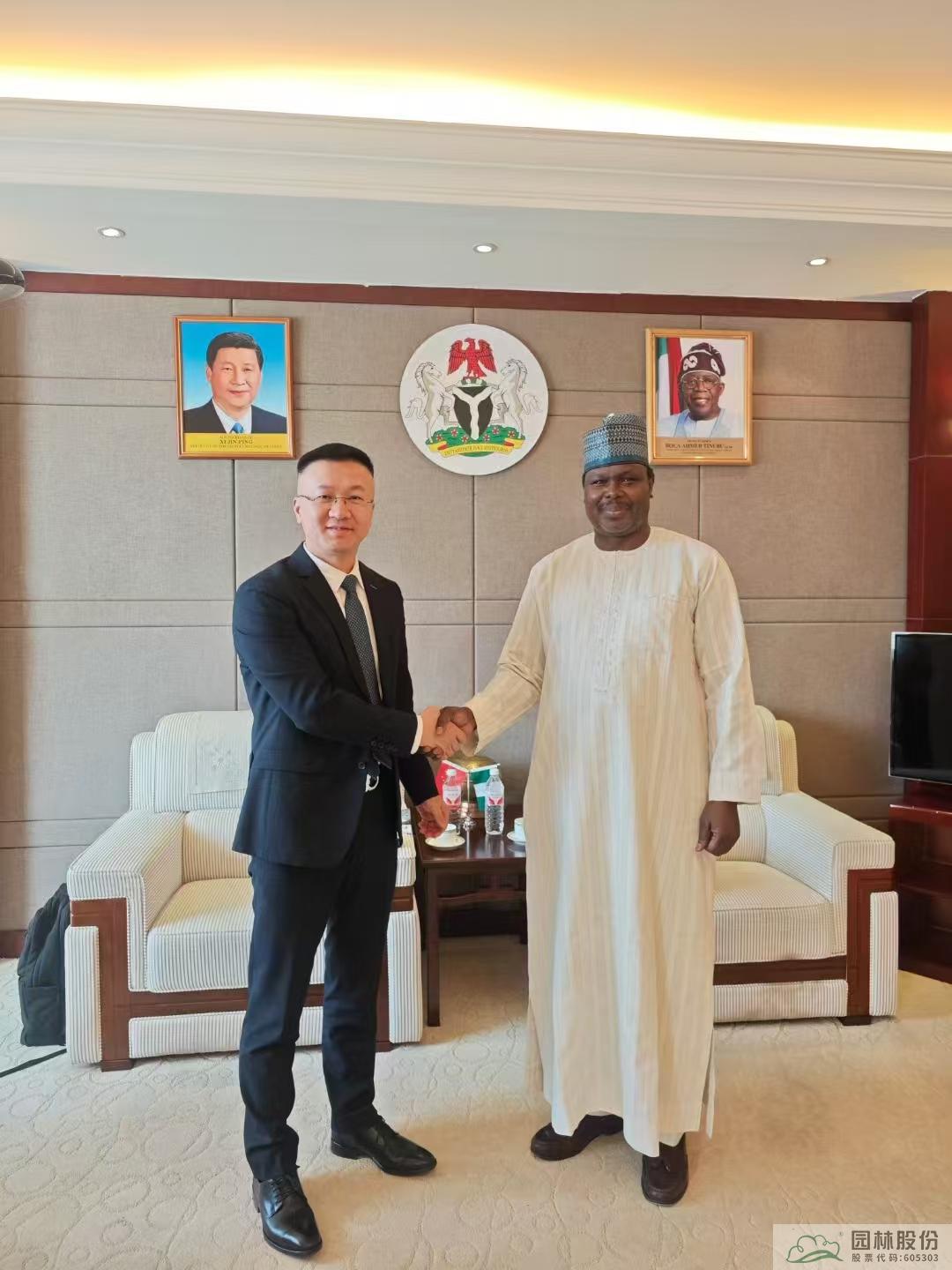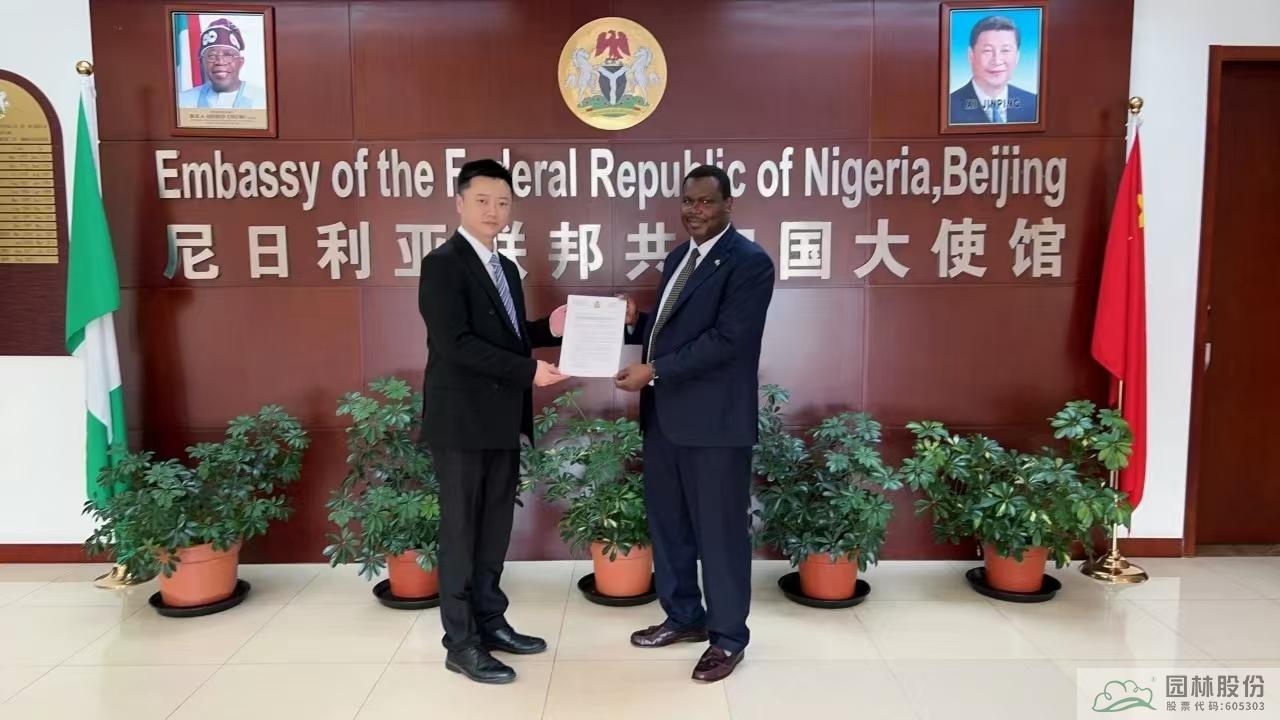 2024年9月,在杭州第三屆全球數字貿易博覽會-“數智中非”產業(yè)對接會上,園區(qū)已取得“尼日利亞國家館”正式授權。此次拜訪尼日利亞駐華大使館,陳振華與駐華大使巴巴加納·瓦基勒(Babagana Wakil)就國家館建設、農產品貿易、投資合作等議題進行了深入交流。