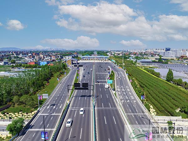 項目采用江南園林自然式組團配置造園手法,通過豎向堆土形成立體空間,以銀杏、黃山欒樹等鄉(xiāng)土樹種為背景基調(diào),丹桂、紫薇及球類構(gòu)成前景,針形、卵形、帚型植物之間相互襯托。結(jié)合杭州亞運特色,以立體綠雕塑、亞運吉祥物、時花布置、道旗裝飾、收費站門樓及收費亭、公安檢查站、花箱等多種展現(xiàn)形式,呈現(xiàn)“綠色亞運理念”,展現(xiàn)共贏金銀銅牌,共享綠色盛會,共賞錢江潮涌。